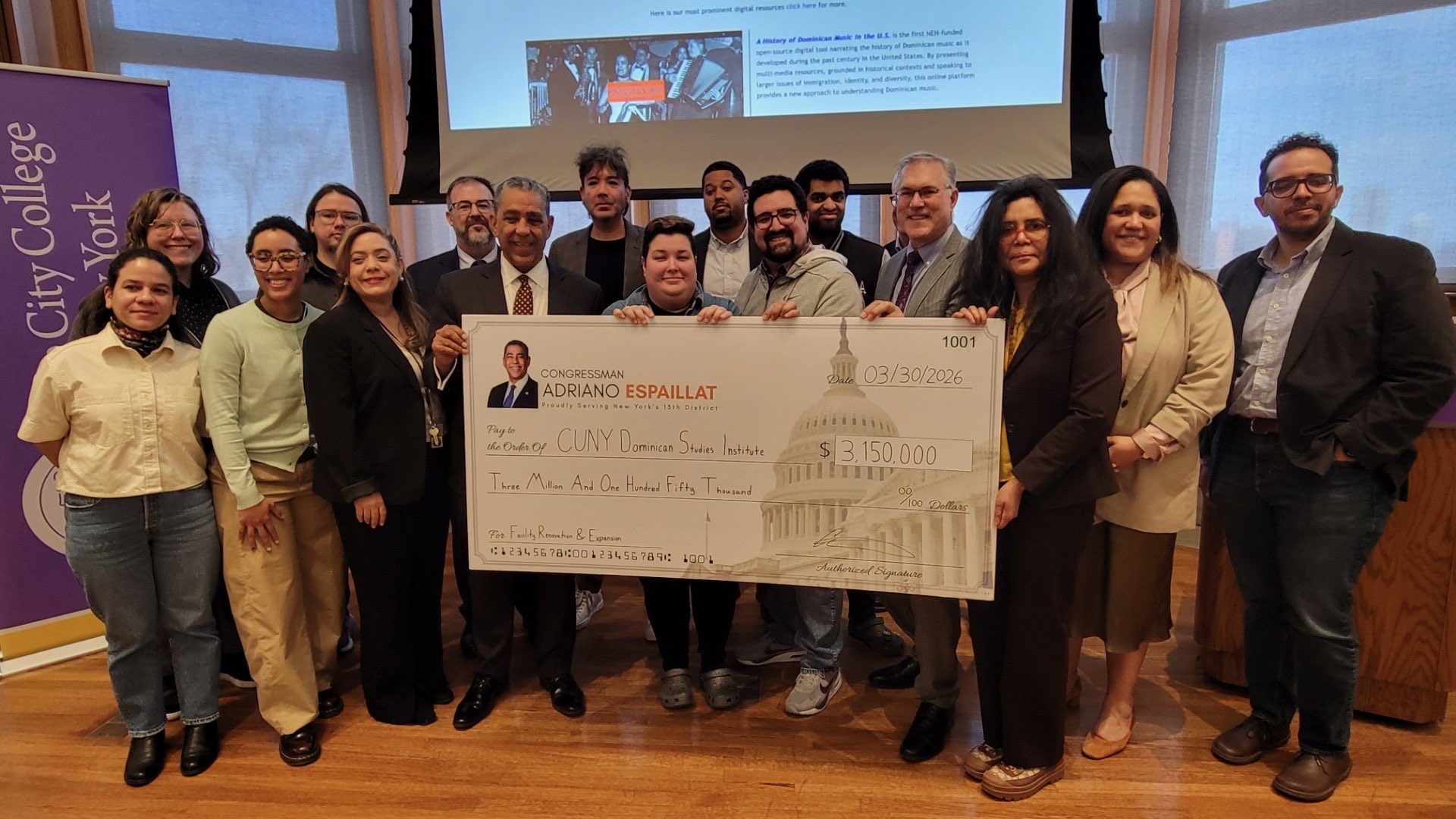 NUEVA YORK. – El congresista Adriano Espaillat entregó $3.1 millones de dólares en fondos federales al Instituto de Estudios Dominicanos de CUNY, destinados a proyectos de expansión, modernización y fortalecimiento de sus capacidades de investigación y preservación histórica.