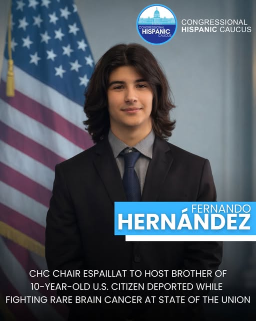 “Es un honor para mí traer a Fernando Hernández como mi invitado al Discurso sobre el Estado de la Unión de esta noche en honor a su hermana, Sara, y a su familia”, dijo el Rep. Espaillat. “Siendo uno de seis hijos, Fernando se vio obligado a asumir responsabilidades de adulto a los 17 años, cuando toda su familia fue trasladada a México mientras buscaba atención médica para su hermana menor, Sara, quien padece un raro cáncer cerebral. Su familia ha pasado por una experiencia terrible, ya que Fernando ha vivido solo, ha terminado la secundaria y ha trabajado para mantener el hogar familiar y pagar las facturas, a la vez que ayuda a cubrir el costo de los medicamentos que le salvarían la vida a su hermana. Su presencia hoy es un recordatorio poderoso de que, detrás de cada debate sobre políticas, hay familias reales que merecen soluciones compasivas y sensatas, que mantengan a sus seres queridos unidos y garanticen que los niños puedan acceder a cuidados cruciales”.