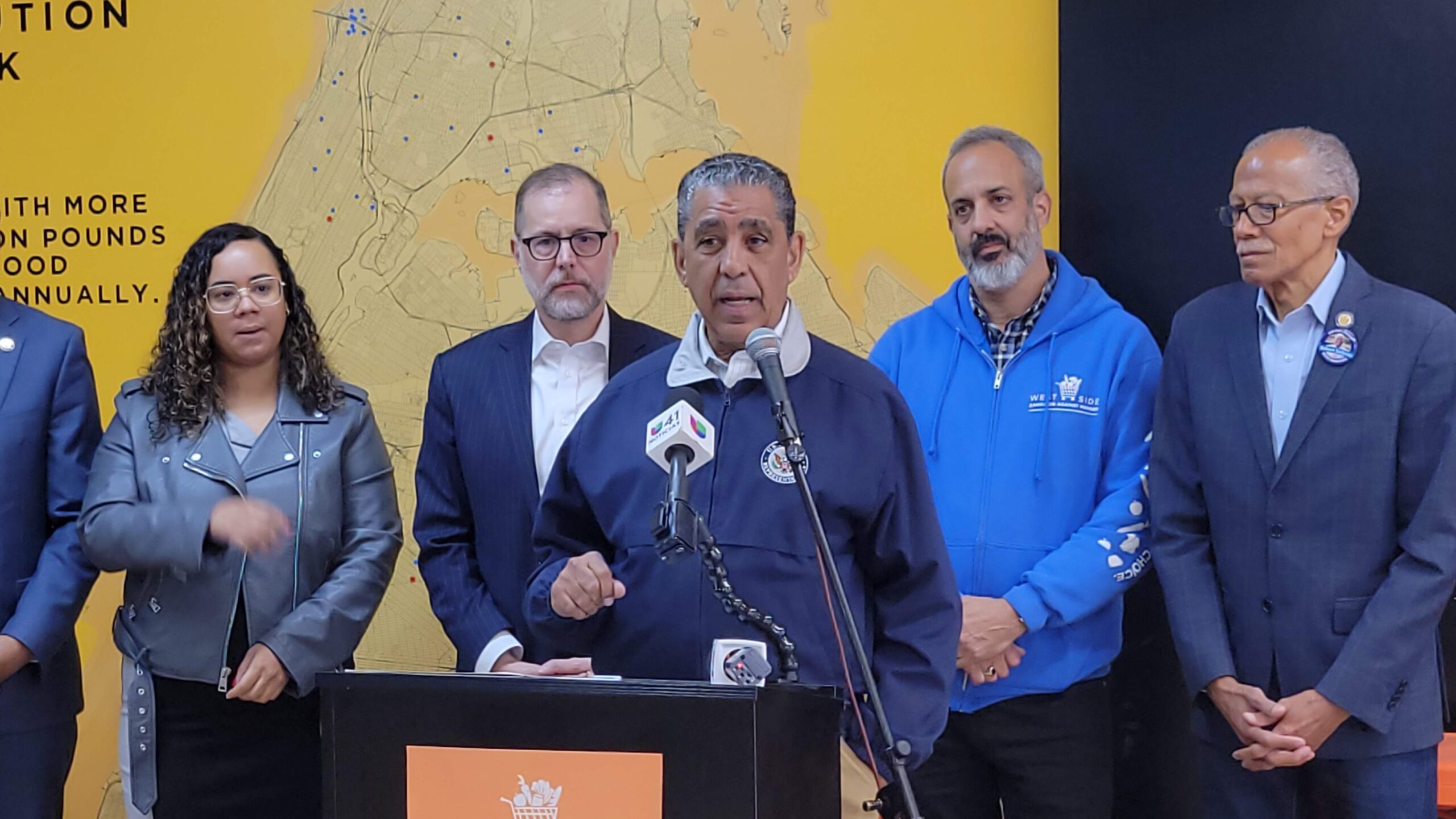 Durante la conferencia, Espaillat estuvo acompañado por el presidente del condado de Manhattan, Mark Levine; el senador estatal Robert Jackson; la concejal Carmen De La Rosa y el asambleísta estatal Manny De Los Santos, quienes expresaron su apoyo a las comunidades afectadas y a las organizaciones que combaten el hambre en la ciudad.