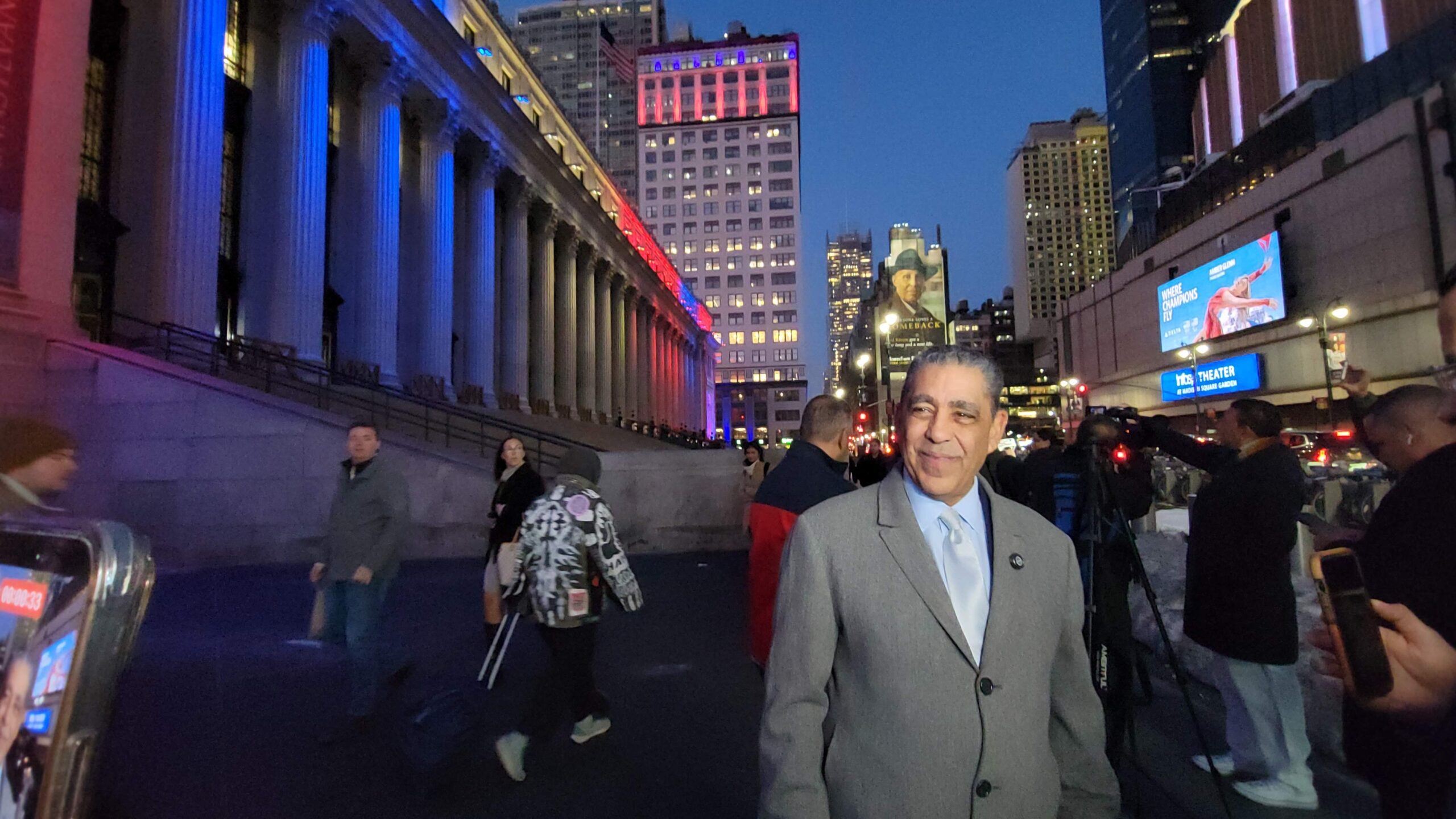 En el acto de iluminación del edificio del Moynihan Train Hall, de la estación Penn, lo acompañó el cónsul general de República Dominicana en Nueva York, Jesús (Chu) Vásquez Martínez.