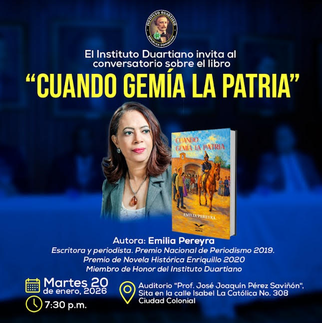 La reconocida escritora dominicana Emilia Pereyra presentará su novela histórica Cuando gemía la patria, una obra que explora un período crucial de la historia nacional, en un conversatorio abierto al público.